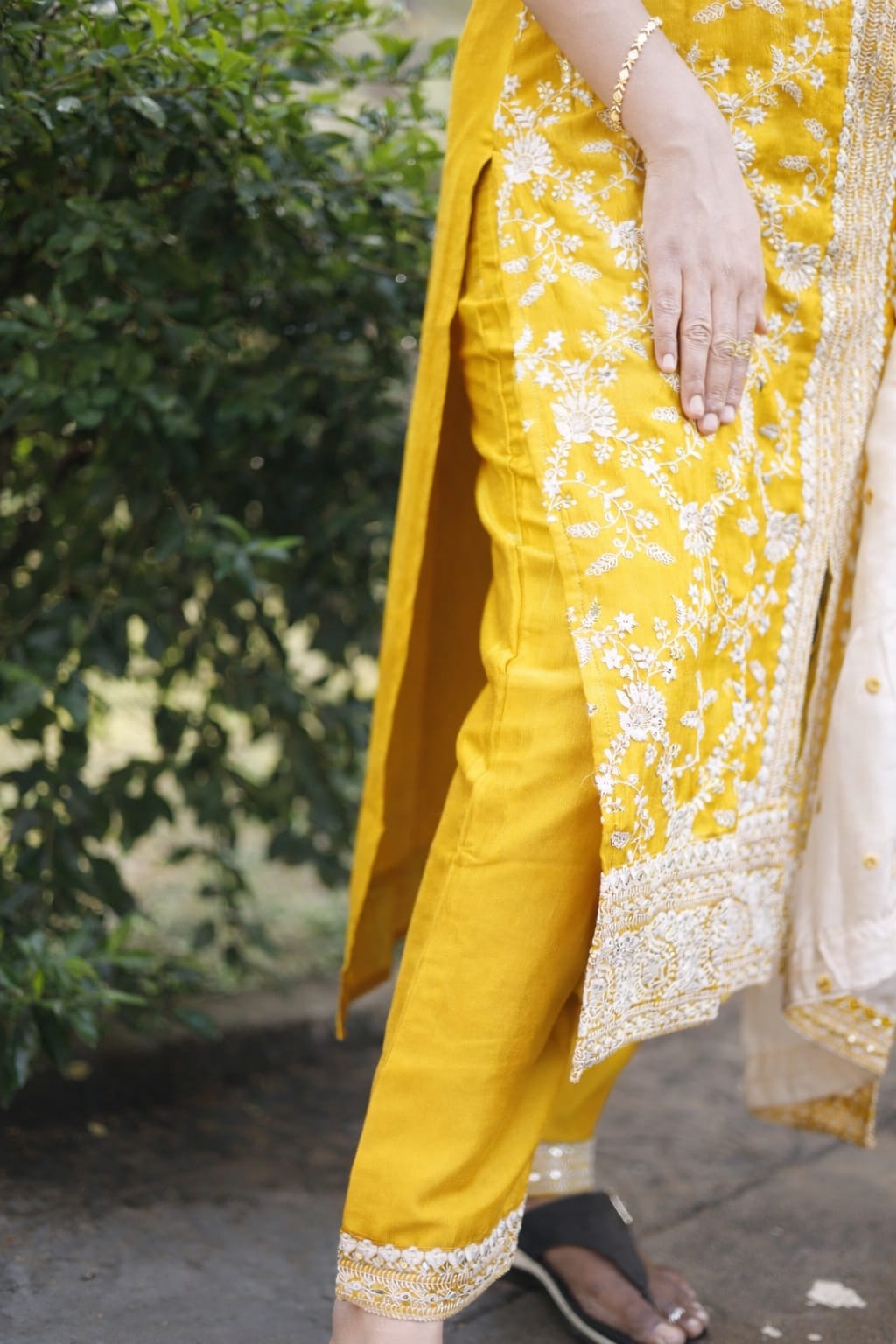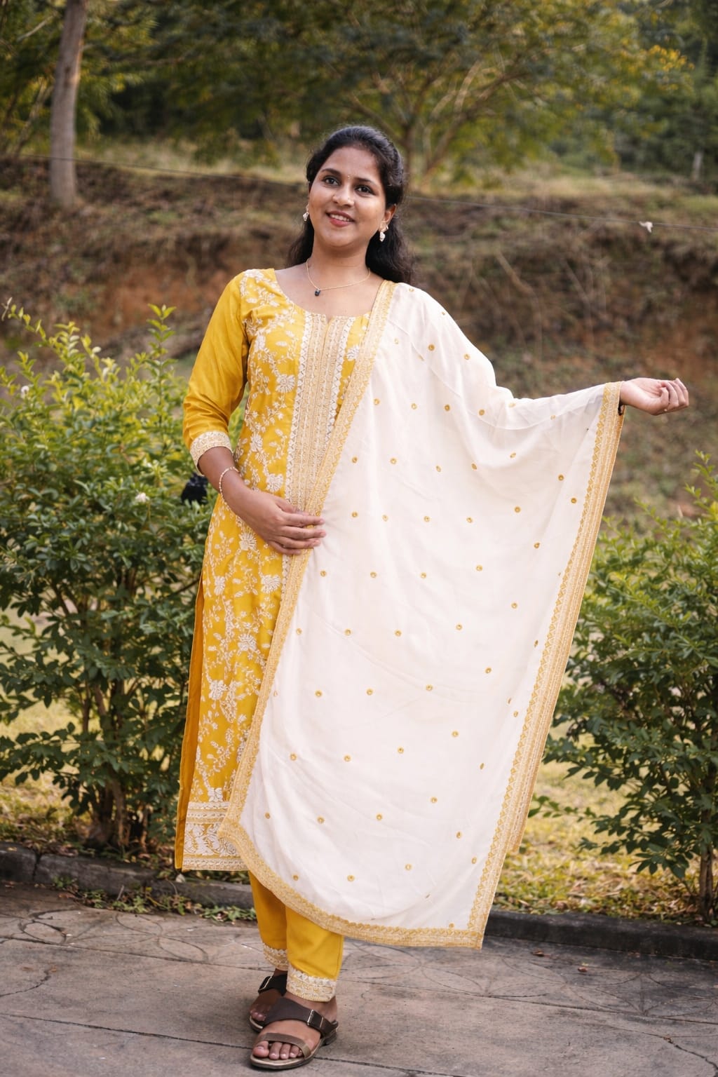 Radiating festive charm, the Sunlit Elegance Embroidered Set features a rich mustard yellow kurti adorned with intricate white and gold embroidery across the neckline and front panel. Paired with a graceful ivory dupatta detailed with delicate gold accents and matching borders, this ensemble blends tradition with timeless sophistication. Perfect for celebrations, family gatherings, and special occasions, it offers both comfort and statement style in one elegant look.